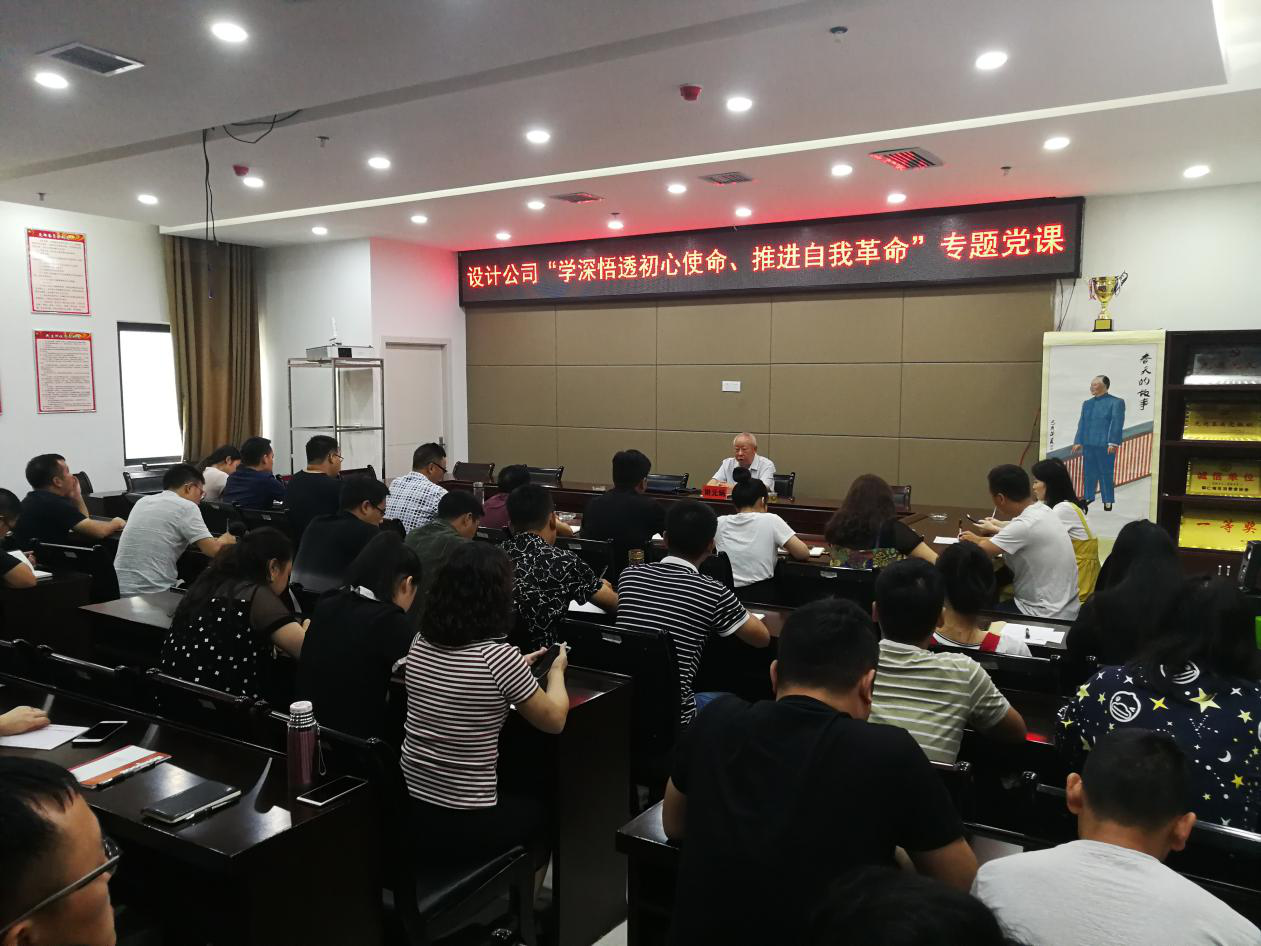 为深入学习习近平总书记在中央政治局第十五次集体学习时强调“全党必须始终不忘初心、牢记使命,在新时代把党的自我革命推向深入”重要讲话精神,7月9日上午,铜仁学院谢元炳教授应邀为铜仁交旅集团公路勘察设计有限公司(以下简称设计公司)讲授题为“学深悟透初心使命·推进自我革命”专题党课。会议由设计公司党支部书记李妮贵主持,在家干部员工60余人聆听了党课。