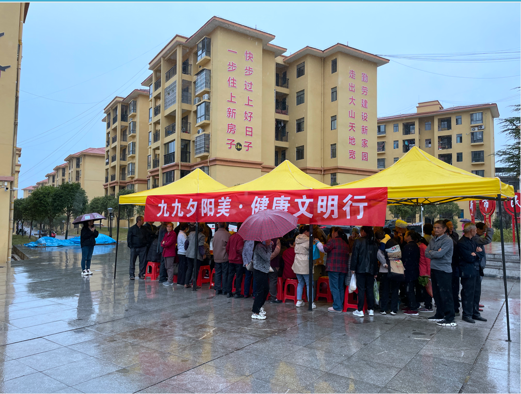 活动以“重阳孝老敬亲·助力舌尖健康”“九九夕阳美·健康文明行”为主题,给辖区内65岁以上困难老人和重病重残困难户送去慰问物资及健康生活物品,并组织医务人员为社区60岁以上老人进行免费健康体检,现场对社区老人作健康知识讲解。