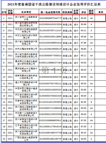 近日,省公路局公布了2021年度贵州省普通国省干线公路建设领域设计、施工信用评价的单位名单,bv伟德国际1946(以下简称设计公司)在贵州省2021年度普通公路设计企业评价中获得“AA”信用评价等级。