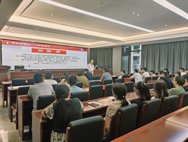 此次讲座邀请政安消防教官戴玉龙教官进行授课。培训结合全国近期的火灾案例,综合运用图片、视频、现场演示等方式围绕火灾的特点、预防火灾的基本常识、如何有效排查安全隐患,并着重介绍了灭火器等消防设备的使用方法及灭火器种类,让大家对常见火灾预防、室内消防器材运用等有了进一步的了解,增强了消防安全意识。