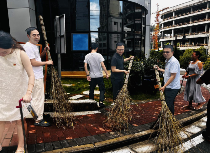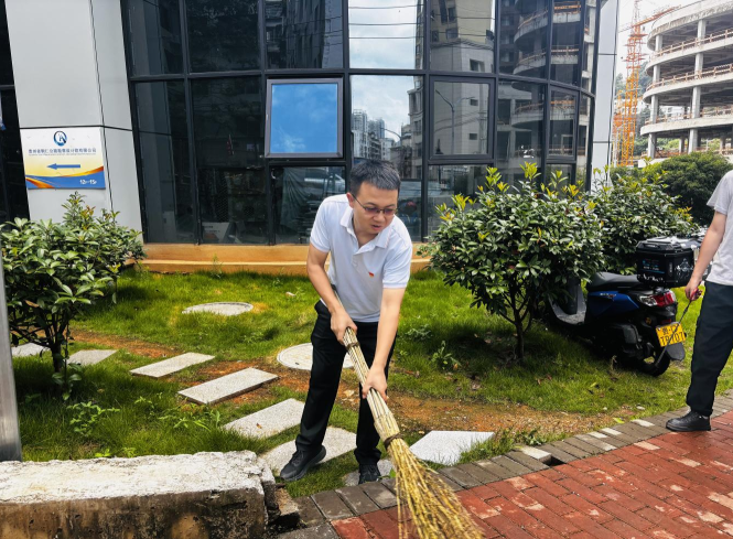 活动中,公司董事、副总经理付昌金、杨富林带领党员干部职工一起协同作战,充分发挥先锋模范带头作用,办公楼周边到处是热火朝天的环境清理场面。党员干部拿起工具,躬下身子,耐心细致地对公司办公楼周边、主干道两侧等区域散落的杂草、杂物、落叶、烟头、纸屑等生活垃圾进行清理和分类。通过大家的共同努力,公司办公楼及周边环境卫生状况得到明显提升和进一步美化、净化。